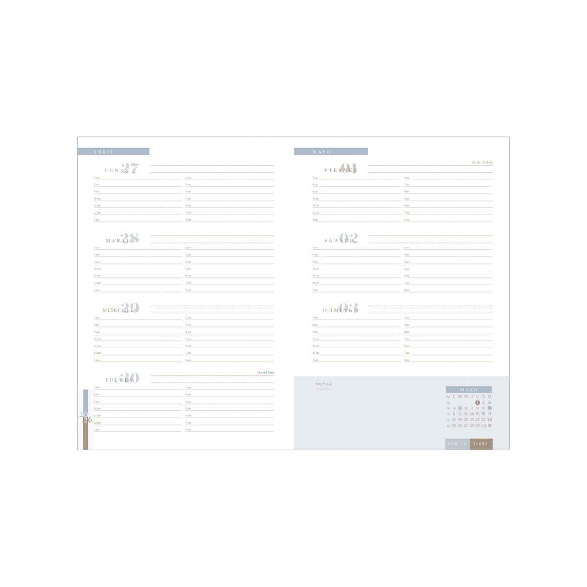 AGENDA SEMANAL CLÁSICA 2026 NEGRO ZEGNO