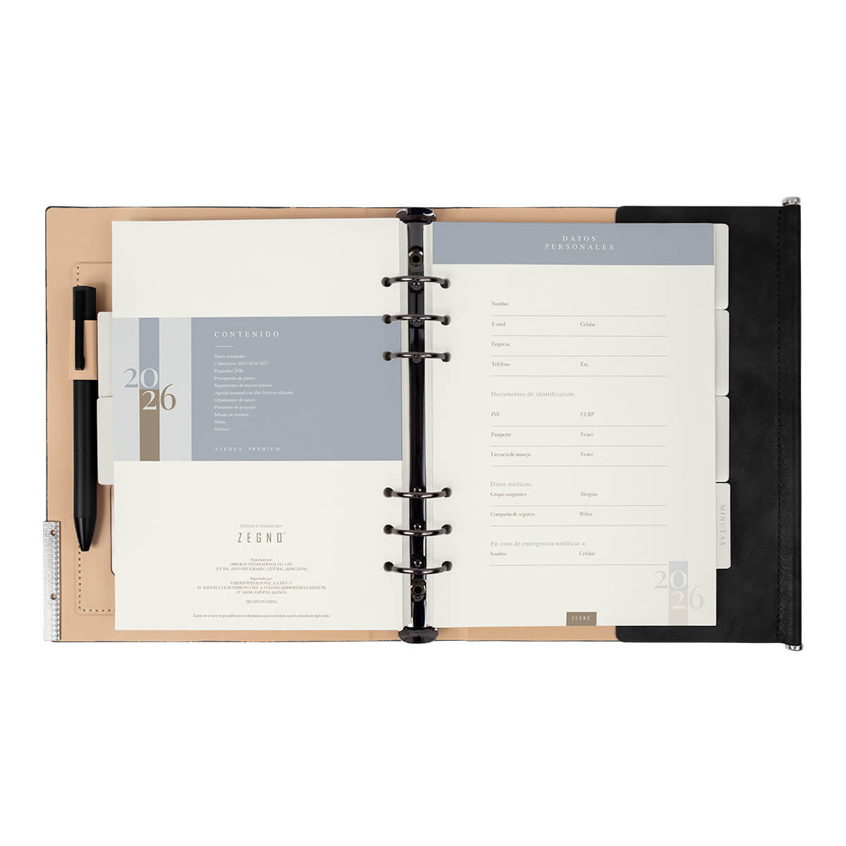 AGENDA SEMANAL PREMIUM 2026 NEGRO ZEGNO